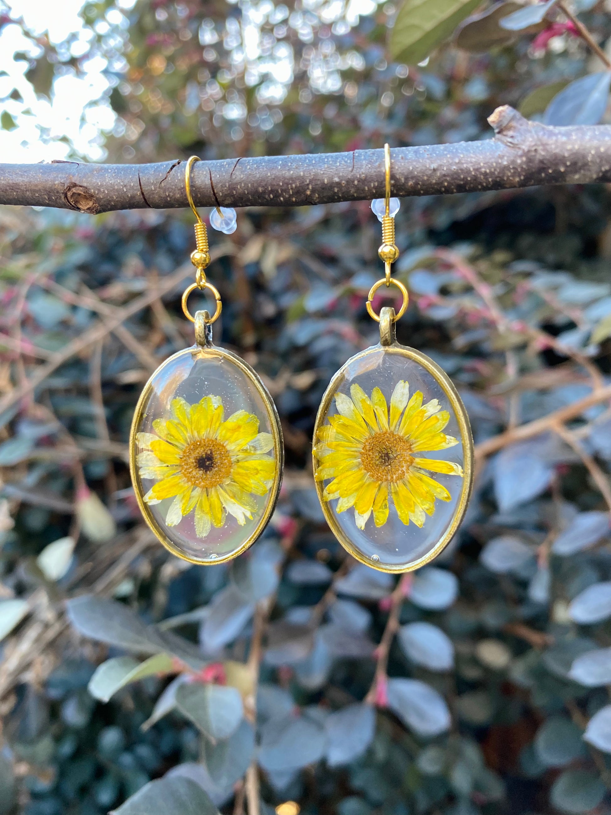 Handmade Pressed Daisies Resin Dangle Earrings